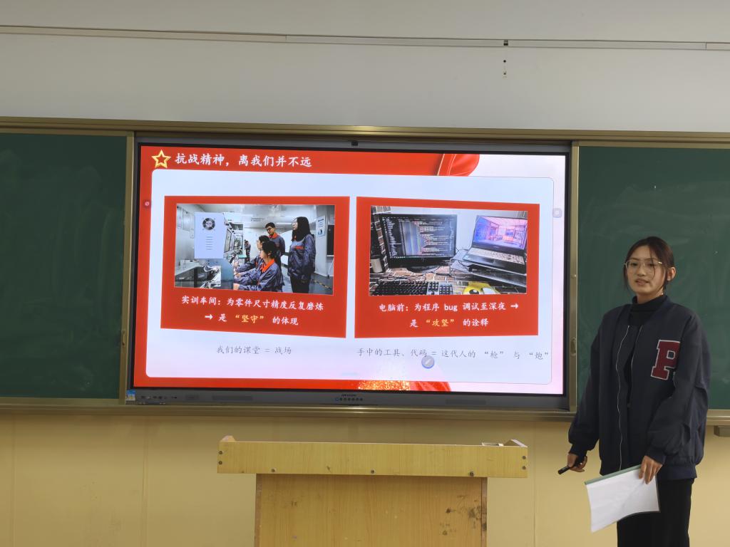 经过激烈角逐,比赛评出一等奖1名、二等奖2名、三等奖3名。学生科长魏和森在总结发言中高度评价选手表现:“同学们用‘小切口’呈现‘大主题’,用‘青春语’传递‘时代音’,展现了智能建造学院学子的家国情怀与专业素养。”她结合学院专业特色,勉励学生将伟大抗战精神转化为学习动力,在绿色建造、智慧城市等领域勇攀高峰。
