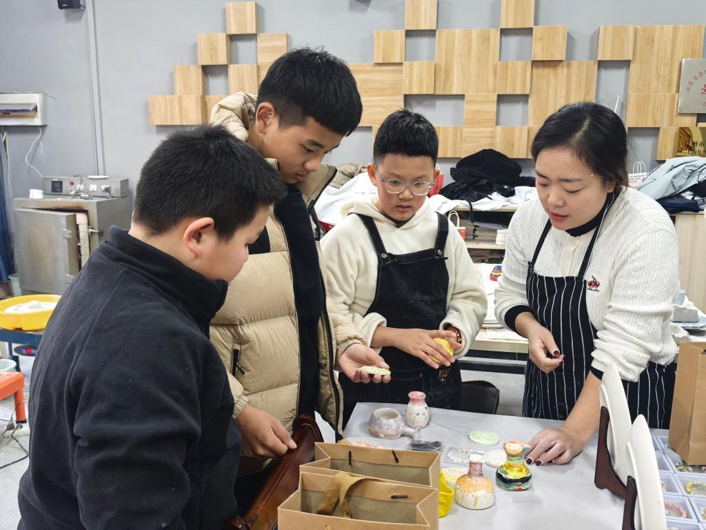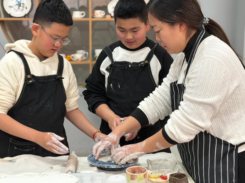 2025年12月24日,徐州市祥和小学与徐州市鼓楼生态园小学的师生代表走进我院,开展了一场以“非遗传承与职业体验”为主题的普职融通实践活动。同学们在我院爱陶社指导教师的带领下,亲手触摸陶泥、体验传统技艺,在沉浸式学习中感受非物质文化遗产——陶艺的深厚底蕴与匠心精神。
