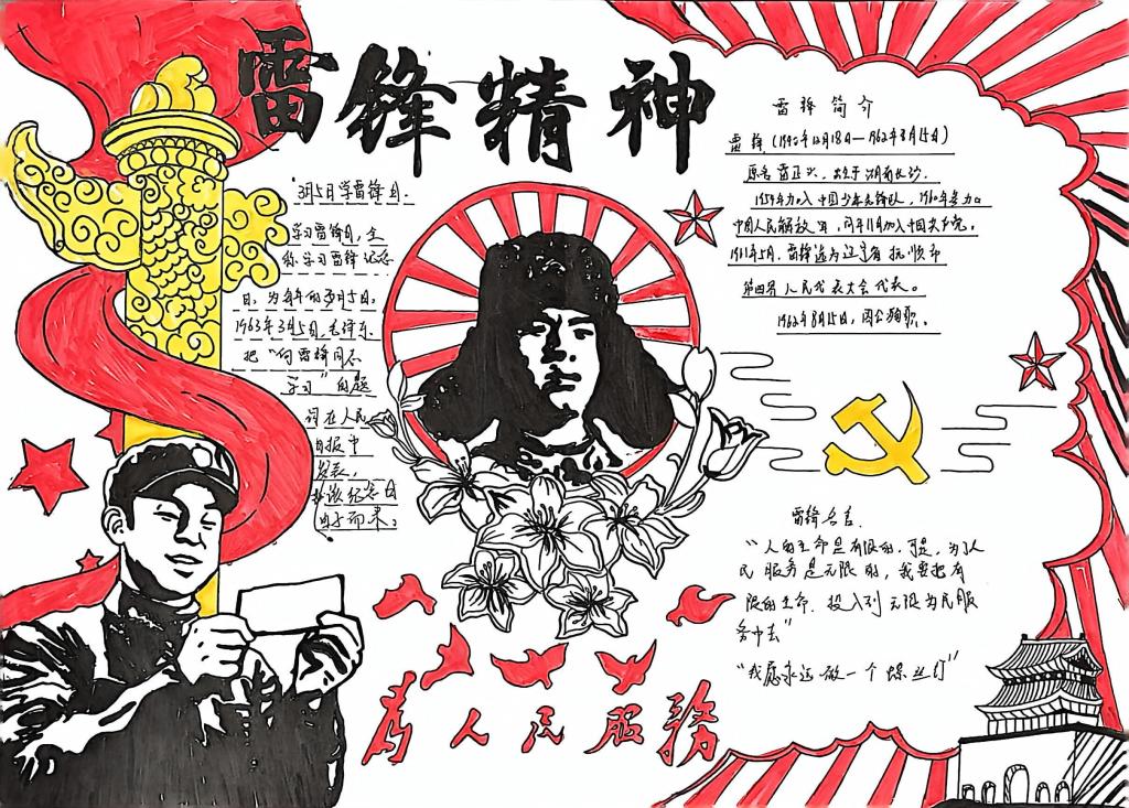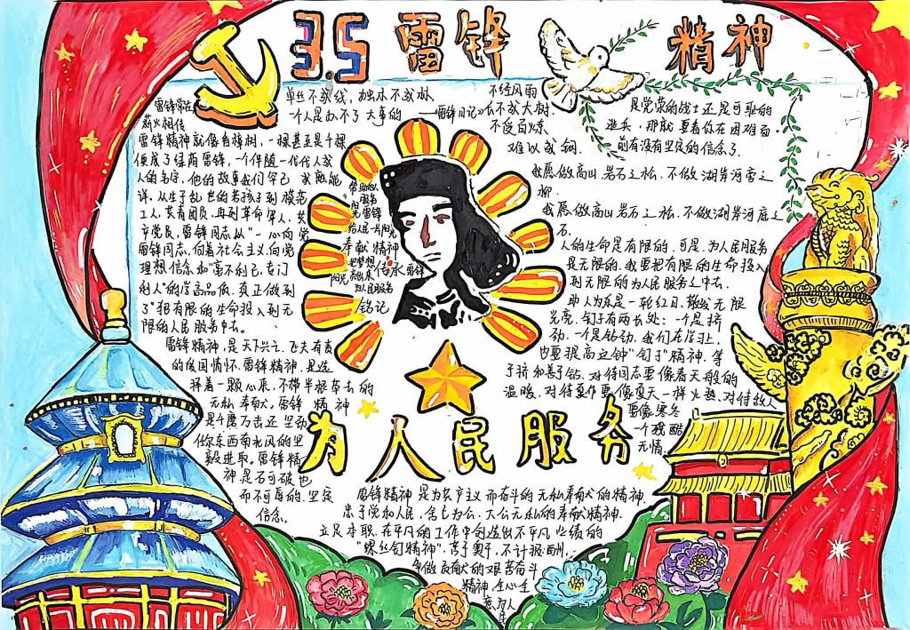 文化铸魂强信念,精神传承入人心。雷锋精神主题手抄报比赛同步开展,学子们围绕雷锋事迹、雷锋语录、志愿精神践行等内容精心创作,生动展现新时代青年对雷锋精神的理解与传承。学院经过评审,将优秀作品通过展板展示,进一步营造“人人学雷锋”的浓厚氛围。