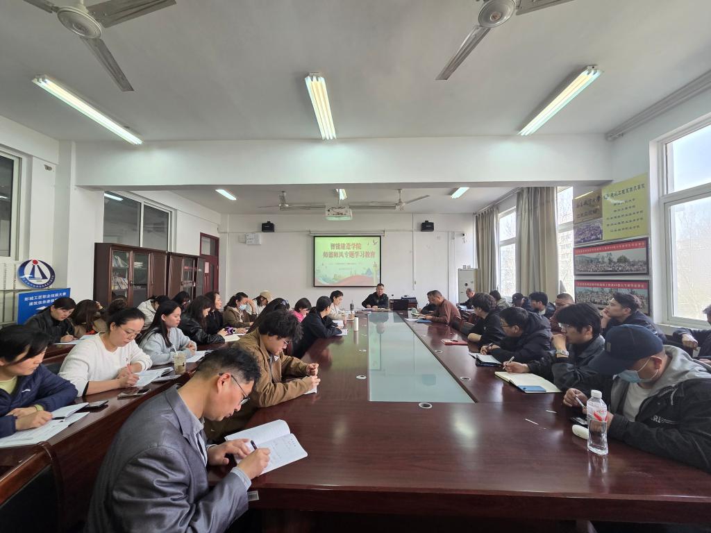 2026年3月27日,智能建造学院召开全体教师大会,专题学习研讨师德师风建设工作。会议由王会波院长主持。